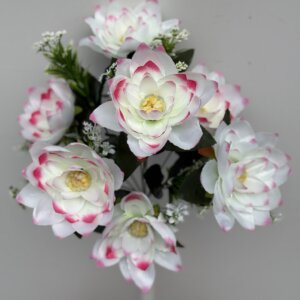 Самый большой выбор (более 130 видов) с широчайшей цветовой гаммой представлены в интернет-магазине “33 букета” искусственные цветы Средних букетов. Их высота составляет 45 – 50 см. Это копии роз, ромашек, хризантем, тюльпанов и многих других цветов со средним количеством цветочных головок от 6 у очень крупных и до 30-ти у маленьких. Все они высокого качества и произведены из безопасных материалов. Такими букетами украшают интерьеры больших помещений, используют в свадебной флористике (создают торжественные арки и украшают свадебные автомобили), вплетают в траурные венки, а также во многих других случаях. Приобретение Средних букетов у нас – лучшее решение как по цене, так и по качеству.